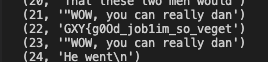 1 | 猜字符串游戏(大小写字母+数字),猜中全部20位得flag+送去非洲,你不小心偷看到了一部分是: |