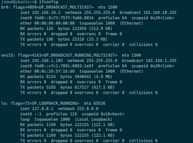 此时ifconfig如下