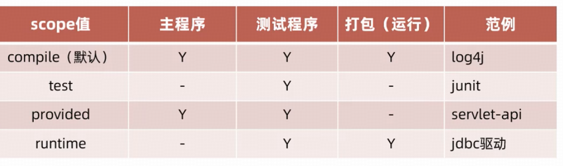 - 依赖的jar包,默认情况下可以在任何地方使用。可以通过<scope>设置其使用范围