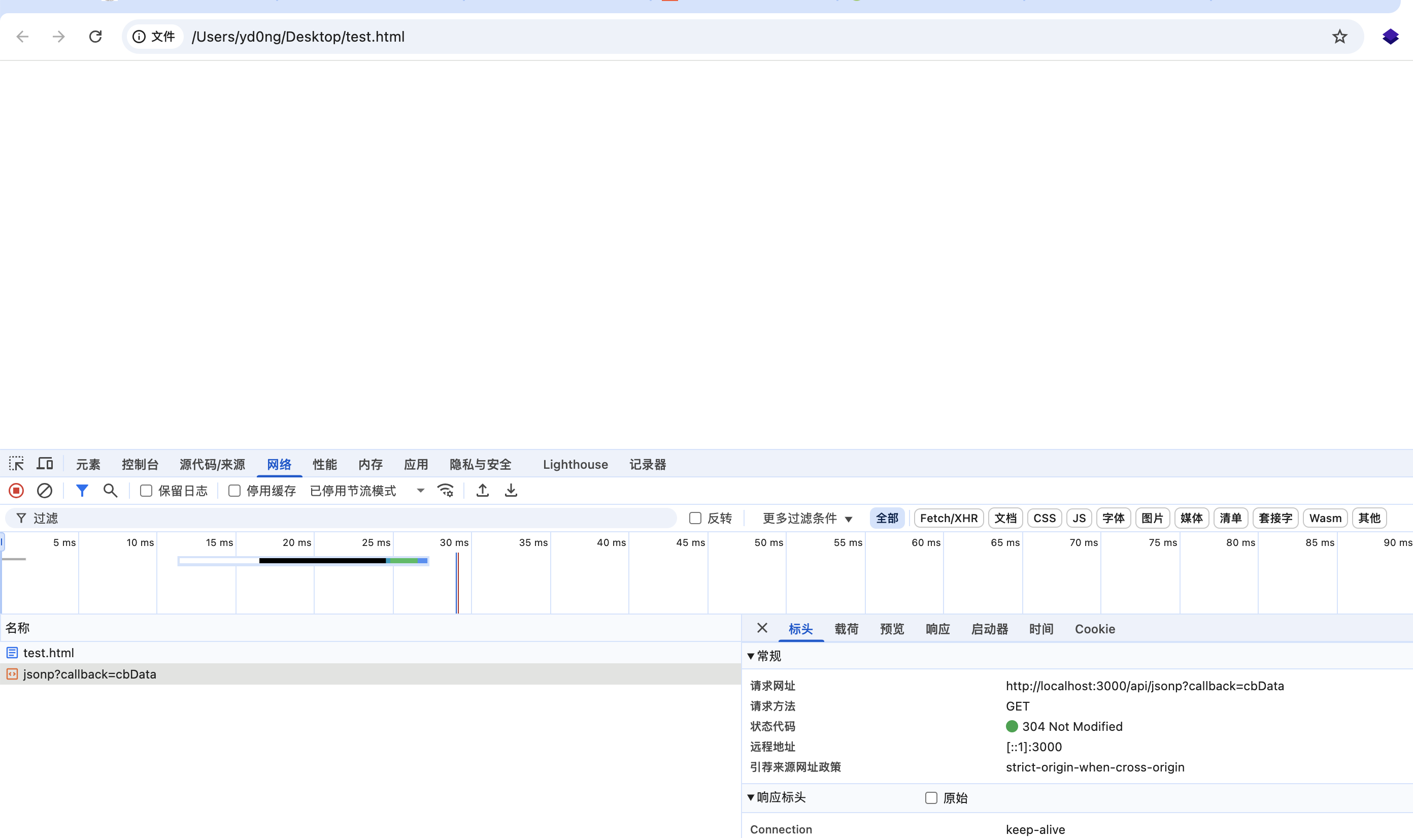 - 同源和跨域是浏览器的行为,是浏览器安全机制;