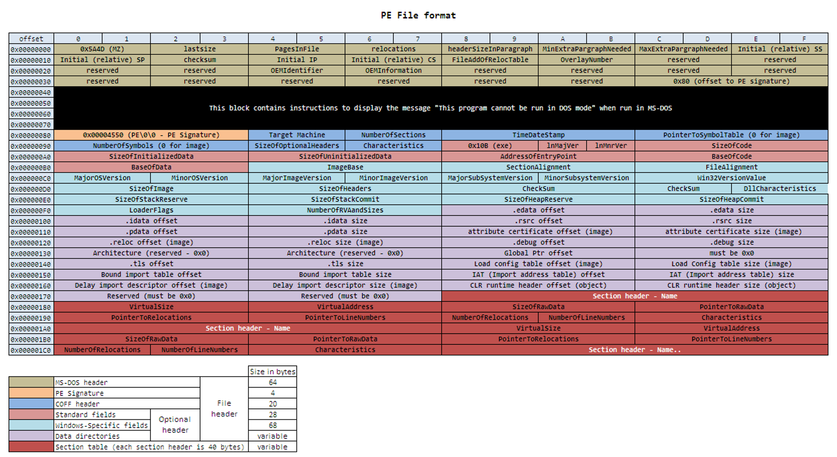 - 微软创建PE文件时,DOS文件仍在广泛使用,为了兼容DOS文件,使用64(0x40)个字节用来扩展DOS-EXE文件。